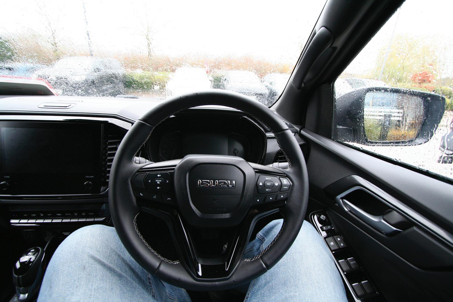 This new model retains the proven strengths of the award-winning D-Max range. With a 1-tonne payload, 3.5-tonne towing capacity and full four-wheel drive, the V-Cross Commercial is ready for tough jobs across worksites. For even greater control in challenging conditions, it also comes with Rough Terrain Mode and a rear differential lock, delivering ultimate confidence when tackling demanding off-road environments. Indeed, our test drive took place on an incredibly wet and windy Winter’s day, which worked as the perfect testing ground. It feels a little sill to admit, but navigating through all manner of mud and water down country lanes actually became something rather fun. Despite the size of the D-Max, it never feels overbearing behind the wheel. In fact, there’s a suprisingly impressive manoeuvrability and nippiness off the line thanks to a responsive automatic gear box. The aforementioned rear view mirror visibility adds another dimension to