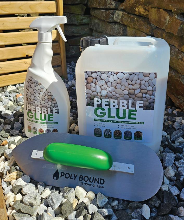 PebbleGlue is a Polybound brand. The Brighouse-based firm already has a training academy which generates approved installers for its well-established resin bound surface systems, but its latest product is an altogether more universal instal. Already stocked in builders’ merchants in the north, PebbleGlue is a product that any tradesperson can use without instruction.