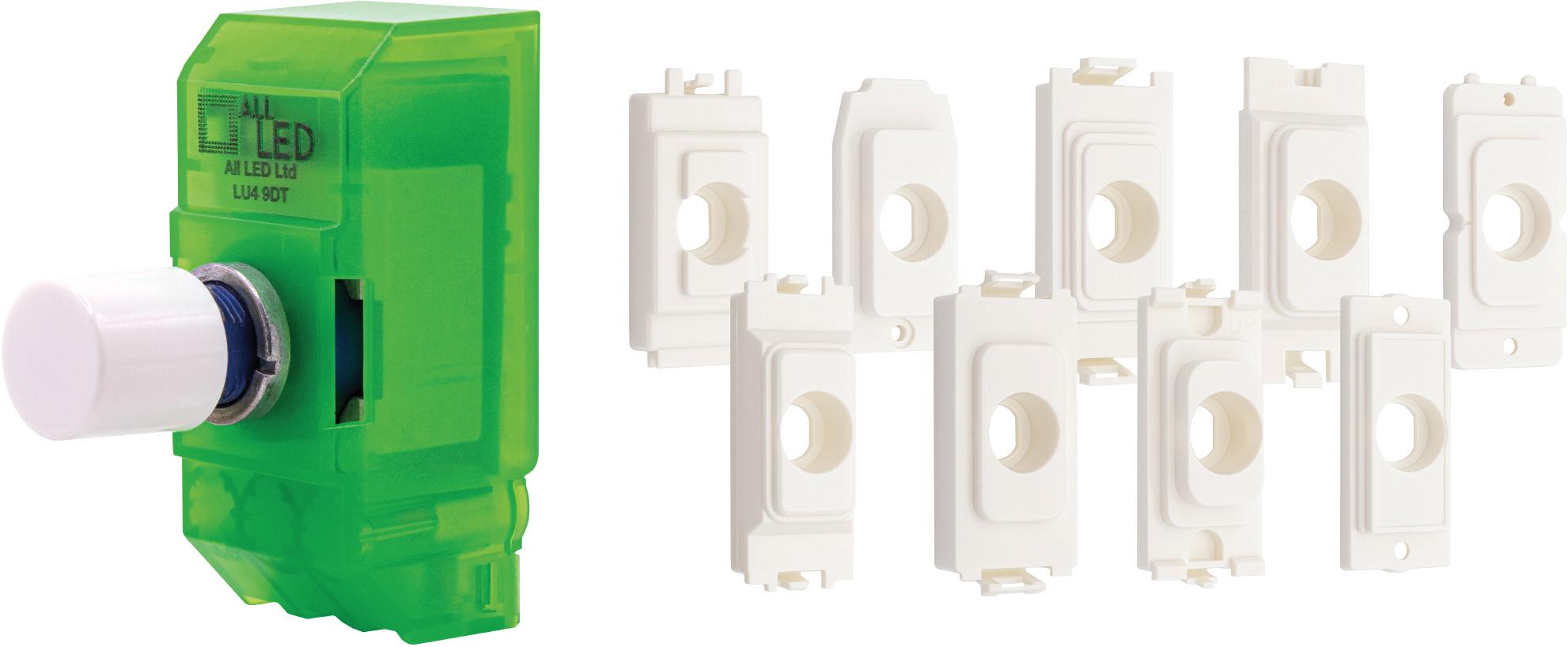 Completing the range is the All-Dim 150 W 2 Way LED Grid Dimmer, supplied with a full set of nine white adaptor plates