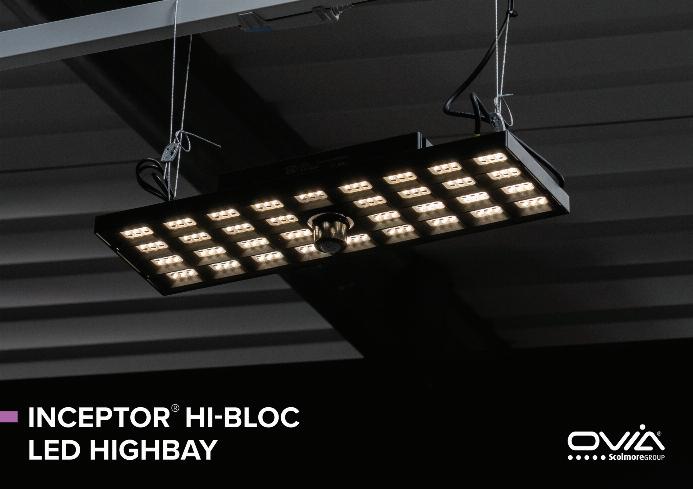 Ovia’s Inceptor Hi-Bloc is a CCT- and power-switchable linear Highbay designed for high-ceilinged industrial and commercial spaces Delivering strong, controlled illumination for warehouses, factories, gymnasiums and similar environments, it features a distinctive diffuser that provides enhanced glare reduction with a UGR ≤22 for improved comfort and visibility Its slim, linear design and narrow 72° beam angle focus light effectively down long aisles and rectangular spaces for targeted coverage Installer-friendly elements include an easily accessed CCT/power switch positioned behind an IP65 threaded cap, two mounting hooks for chain installation and an integrated spirit level for precise alignment An optional mounting bracket adds further flexibility. For advanced control, a programmable remote adjusts PIR range, sensitivity, daylight thresholds, hold times and standby settings. The Hi-Bloc also works with Ovia’s 5 W 3 Hour Maintained IP65 Emergency Pack for consistent emergency lighting.