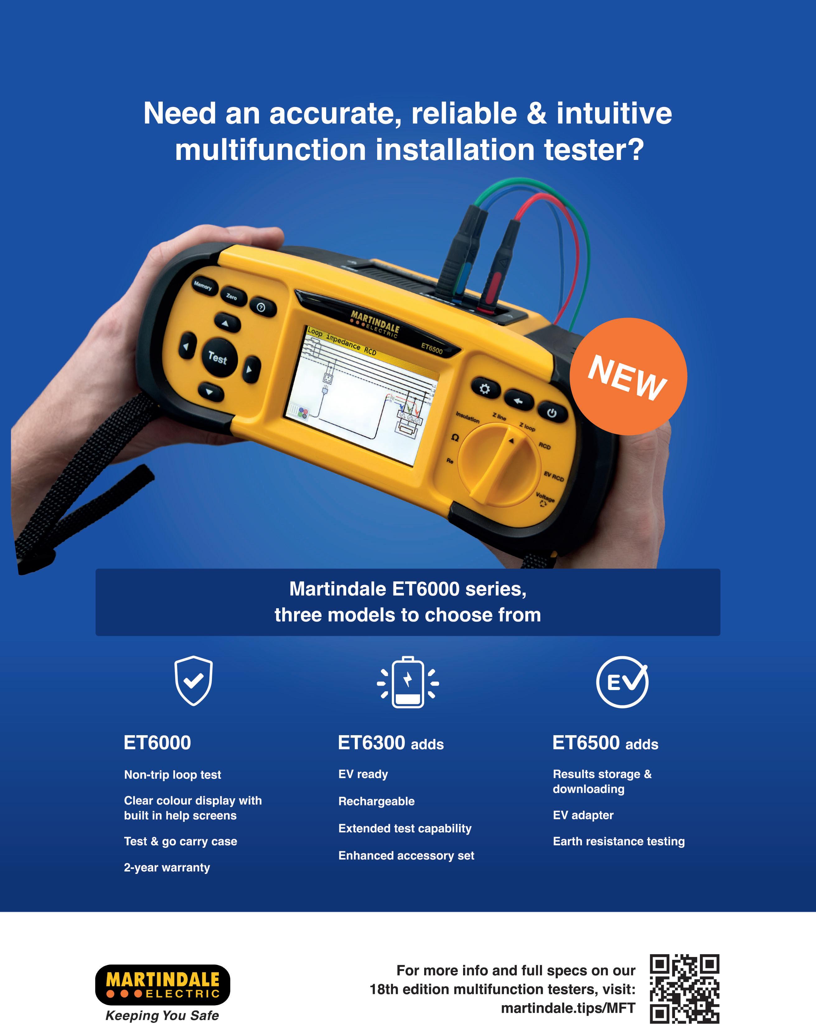 Fluke has launched the new 1670 Series Multifunction Installation Tester, designed to significantly reduce the amount of time electricians and maintenance technicians spend producing reports Designed by Fluke to represent the future of installation testing the innovative MFT also enable tests to be carried out up to 30% faster Available in three models – ideally suited to the needs of residential, commercial and industrial applications – the tools boost productivity through a user programmable AutoTest function that enables electricians to run an entire automatic installation test sequence at the touch of a button Measurement data and metadata from the field are quickly stored, managed and shared using Fluke Connect software while Fluke’s TruTest software simplifies the process of generating documentation A single click enables inspection reports to be previewed in the field and certificates generated while on-site Even inspection invoices can be created at the same time This ability to set up, test, upload and report in an easy, single operation is unique to the Fluke 1670 Series Whether working in residential, commercial or industrial installation commissioning, electricians will welcome being able to eliminate time-consuming double-entry of data Results will no longer need to be recorded during testing and then entered manually to a computer, a method that is prone to errors and delays Wireless Bluetooth connectivity on the Fluke 1670 Series solves this problem by automatically linking test results to the circuit or point under test Electricians will also save time by not having to return to a site because key measurements have not been taken or results are found to be incorrect The error-proof Fluke 1670 Series Multifunction Installation Tester shows the operator instantly on-site if any tests have been missed. At the same time, automatic measurement validation compares installation test results to an integrated standards reference, delivering an immediate visual indication of pass or fail on the device’s integrated full-colour touchscreen. The clear display includes a full keyboard so there is no requirement for an additional device or laptop to be used for entering notes or editing details.
