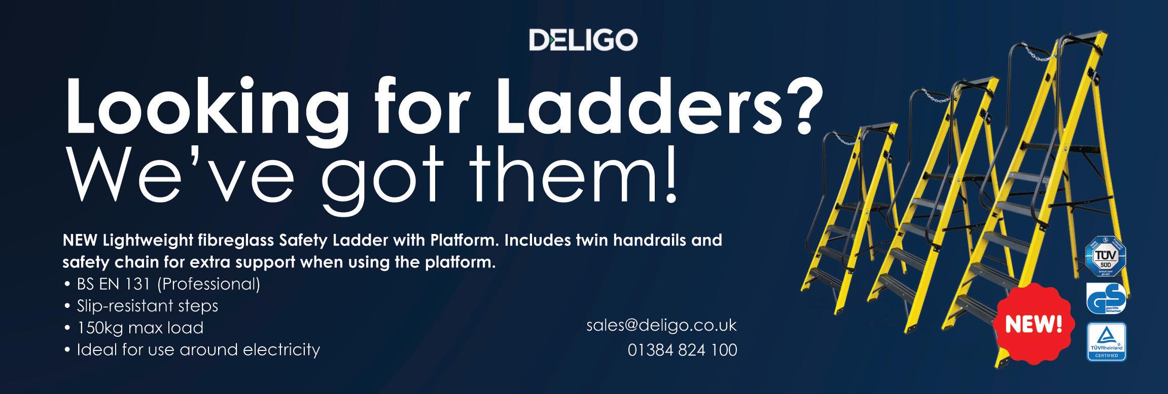 Deligo’s fibreglass ladder range is designed to tackle challenging tasks while prioritising user safety. With a non-conductive fibreglass construction, these platform ladders are especially suited for electricians and those working near live electrical currents. Each safety platform ladder in the range includes slipresistant feet, non-slip treads, and meets BS EN 131 standards, making it the preferred ladder for industries focused on health and safety compliance. Deligo’s fibreglass platform ladders offer professionals longevity, strength, and peace of mind in the reliability of their tools.