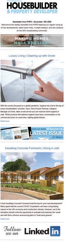 Every issue of PHPD is also available to read page by page online at www.phpdonline.co.uk and emailed out in a digital format to around 8,400 housebuilding personnel and architects with an average open rate of 47%.