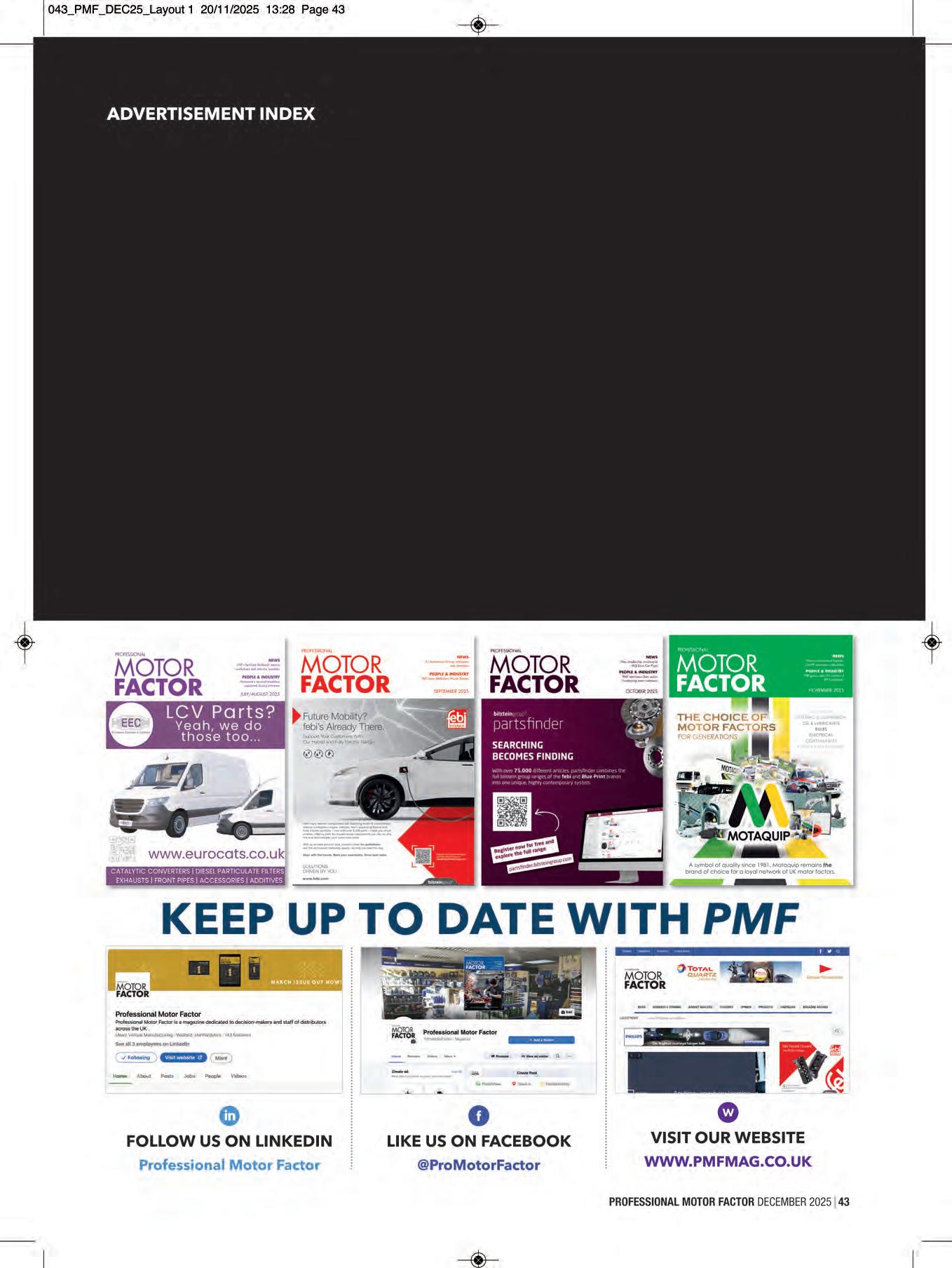 Here we are then: the last issue of 2026 – and we finish with a cracker! There are some fantastic interviews, columns and quotes to get stuck into this month, starting with Lee Gratton from Motor Parts Direct (page 10). Lee has assumed the role of managing director from Darren Wykes, who announced his retirement after 26 years back in October. Despite shadowing Darren during what I’m sure was an intense transition period, Lee paused to answer our questions about how he aims to protect Darren’s legacy – “my baby”, as Darren described MPD – but also make his own mark.