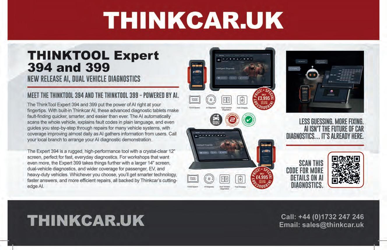 Thinkcar has extended its offering with new AI-powered tools; the technology in the THINKTOOL 394 and 399 automatically scans the whole vehicle, explains fault codes and offers a step-by-step guide through repairs for many vehicle systems. Plus, coverage improves regularly as the AI gathers information from all users.