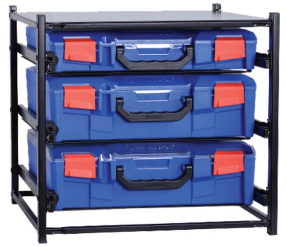 StorageTek is an innovati ve storage solution for consumables and tools in the van or workshop The durable multi-compar tment cases are supplied in a drawer system. The cases are locked in place while travelling and can be removed at the job. Visit the st and to see the StorageTek demo.
