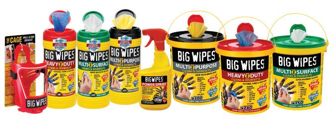 The market leading Big Wipes range with anti viral (EN14476) and antibacter ial (EN1276) eff icacy offer s professional tradespeople an all in