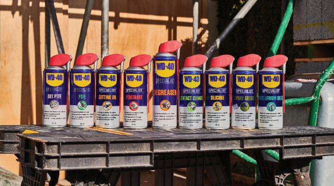 WD 40® Specialist is a range of nine products developed over the past 11 year s by the iconic company for specif ic roles which transcend throughout the day to day challenges faced by professional tradespeople ”The ar ray of Specialist lubr icants and cleaner s essentially elevate WD 40®’s legendar y Multi Use Product to another level of specialit y”