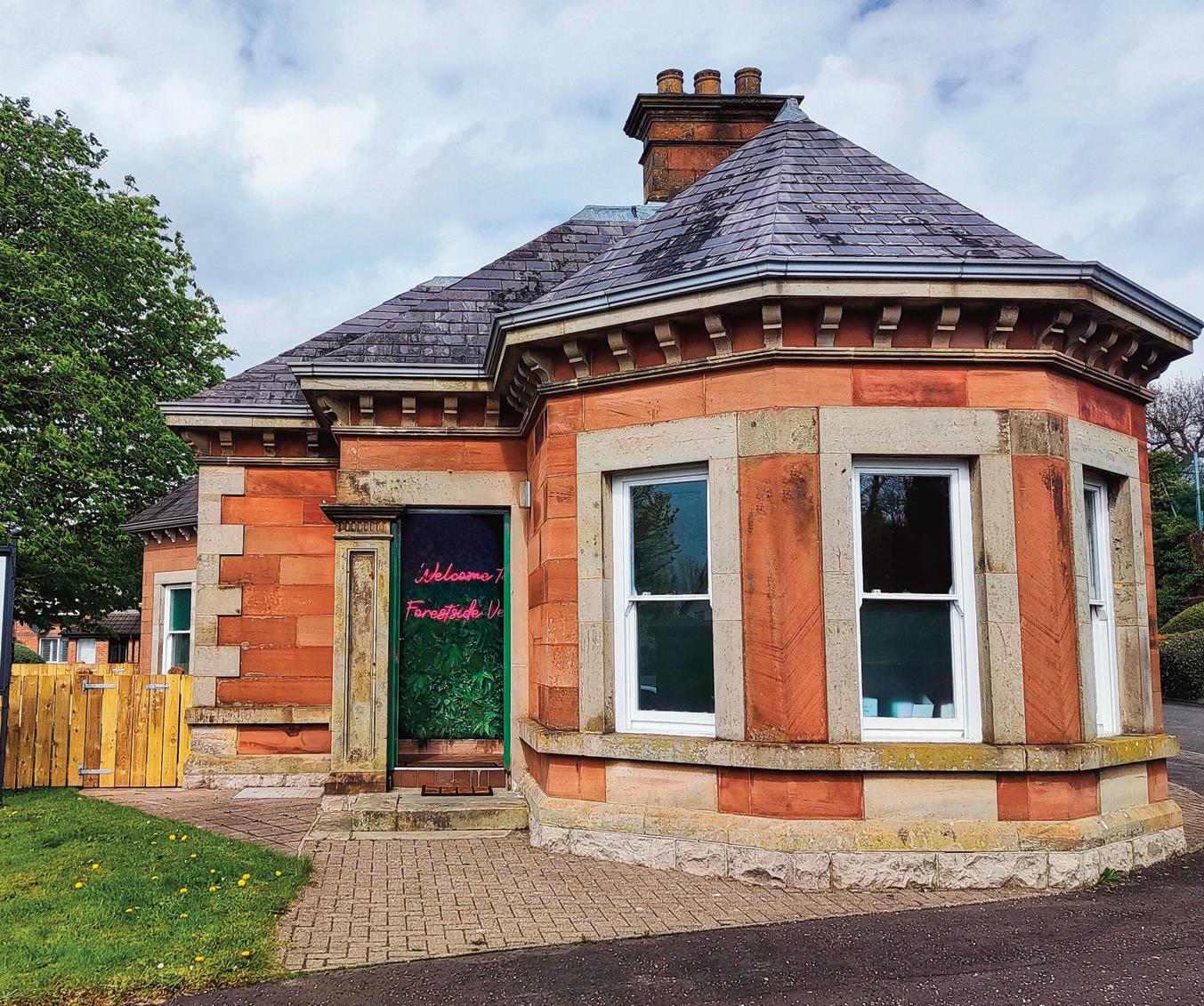 The gate lodge to Galwally House was built in 1885, designed by an unknown architect. When Galwally estate became a hospital in 1917, the gate lodge became disconnected from the main house. In 1985, the little building was extended and converted into a tile showroom, then used as offices from 2006 until 2020.