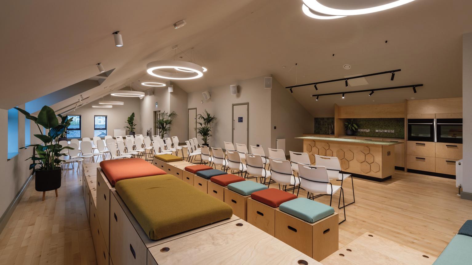 The Canteen and Reception refurb included aesthetic improvements, with new finishes and furniture; an energy efficient roof replacement to the front single storey extension; and WC works.