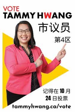 桦林屋顶 519-500-8777 好手装修 289-308-6037 林师傅装修 905-906-2038 陈映会计师 905-962-5335 万家美工程 289-724-5165 Tony Zhang 会计师 647-636-0403 ◆罗伯特·周 安省教育工会同意调解再谈判3日 安省律协取消远程视频身份验证 买卖房子须本人交割 老板想抓员工上班摸鱼? 安省率先立法 shannonweber.ca VOTE 请投她俩一票 推动滑铁卢 前进,创建 更宜居时尚 科技动感之 城市 未来市长,恳请您宝贵一票 Shannon Weber 选举日 10 月 24 日 现 任的哈密尔顿市市长弗雷 德·艾森伯格Fred Eisenberger 做满两届后再无连任的意愿, 这让凯觎本市市长座位的人一下子涌现出九个 候选人来,毕竟不与在任寻求连任的市长侯选 人同台竞争胜算就大多去了,谁不想试试运 气? 这个艾森伯格市长说来也挺有传说的, 当年以哈密尔顿港务局局长的身份,头戴经济 行家的帽子竞选市长,把连任好几届干了十几 年、把个钢铁工业重镇在夕阳工业阴影下带歪 了路的外行市长一声吆喝拉下马。什么闲鸟音 乐城,活生生地把汽车制造业、手机制造业以 及电子制造业全都拱手让给了邻近城市,眼望 大多伦多地区蓬勃兴旺干叹气。于是新上任就 大刀阔斧地要干回制造业复兴,市中心重振, 第一任期可谓是干得风生水起,硬是赶出来一 个GTHA的大多哈区! 那年头,适逢泛美运动会2015年要在多 伦多举办,因哈密尔顿有一家橄榄球主场俱乐 部和室外体育场颇有名气和粉丝,于是就让哈 市配合主办多场橄榄球比赛,这原本是见好 事,不料却惹出市长命运多舛。 为了赛前异地再建新场馆,市长与虎猫 队俱乐部老板杠上了,一个要在西港湾选址, 一个要在红河谷选址。我是支持艾森伯格市长 的,那时还专门在新生活报纸上撰文声援他, 可富豪老板财大气粗耍起赌性宁愿撤出哈市主 场也要坚持自己的红河谷选址主张。加上橄榄 球队联盟主席为虎猫队老 安
