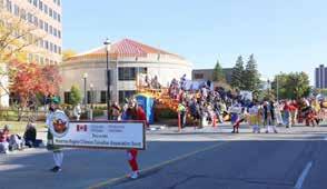 脸上都洋溢着身为中华儿女的自豪。参加方阵游 行的队员们克服种种困难,齐心协力和共同努力。 WCCA游行方阵给加国市民们展示了极具特色的 中国民族服饰,表演扭秧歌,藏族舞蹈,旗袍走 秀,太极拳等反应多姿多彩的中华文化,沿街市 民的喝声和掌声不断,成为游行方阵的一大亮点。 参加这次游行,对宣传中华民族文化和扩大华人 社区在政治,经济,文化等领域的影响有着重要 的意义。这一刻将被载入滑铁卢地区的历史,是 WCCA的骄傲和自豪。(摄影:王加邦 何林) 像以往的活动一样,滑铁卢华人联合会光鲜 艳丽的感恩节游行队伍的背后有着一支强大的义 工后援队伍。他们负责从提供早点咖啡小点心供 应,到游行人员的接送和衣物及手机管理,活动 的摄像、照相、文稿编辑,等等一系列的幕后支持。 再次感谢你们对滑铁卢地区和谐进步的贡献! WCCA 2002年成立 / 服务滑铁卢,基秦拿和剑桥 地区 共创美好 WCCA首次参加Oktoberfest感恩节游行活动圆满成功!