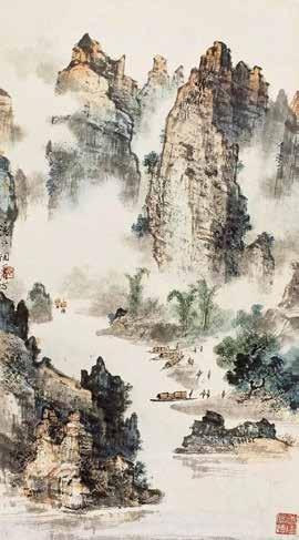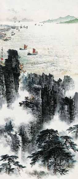 新·生活艺术心路12 编辑:J. Zhang 版式:稻稻 日期:2022.10.15 陶 一清(1914 -1986)、原名文 通、斋号补斋、擅长山水画, 中国美术家协会会员,中国画 研究会副会长。 陶派山水画清新洒脱,不落凡俗,以不 同手法反映不同山川面貌,既真实、又大气, 且别有意境。 写黄山、写泰山、写漓江、写四川,用 笔或挺拔、或粗犷、或细腻,落墨如天马行空, 势如奔马飞腾,莫不曲尽其妙,尤以表现风 雨雪晦更有特色,烟云叠嶂,云飞雾散,满 纸生辉。所谓远观其势、近取其致,当之无愧, 做到了法外求法,形神兼备。 唯美至极的云烟山水 —— 陶一清山水画欣赏
