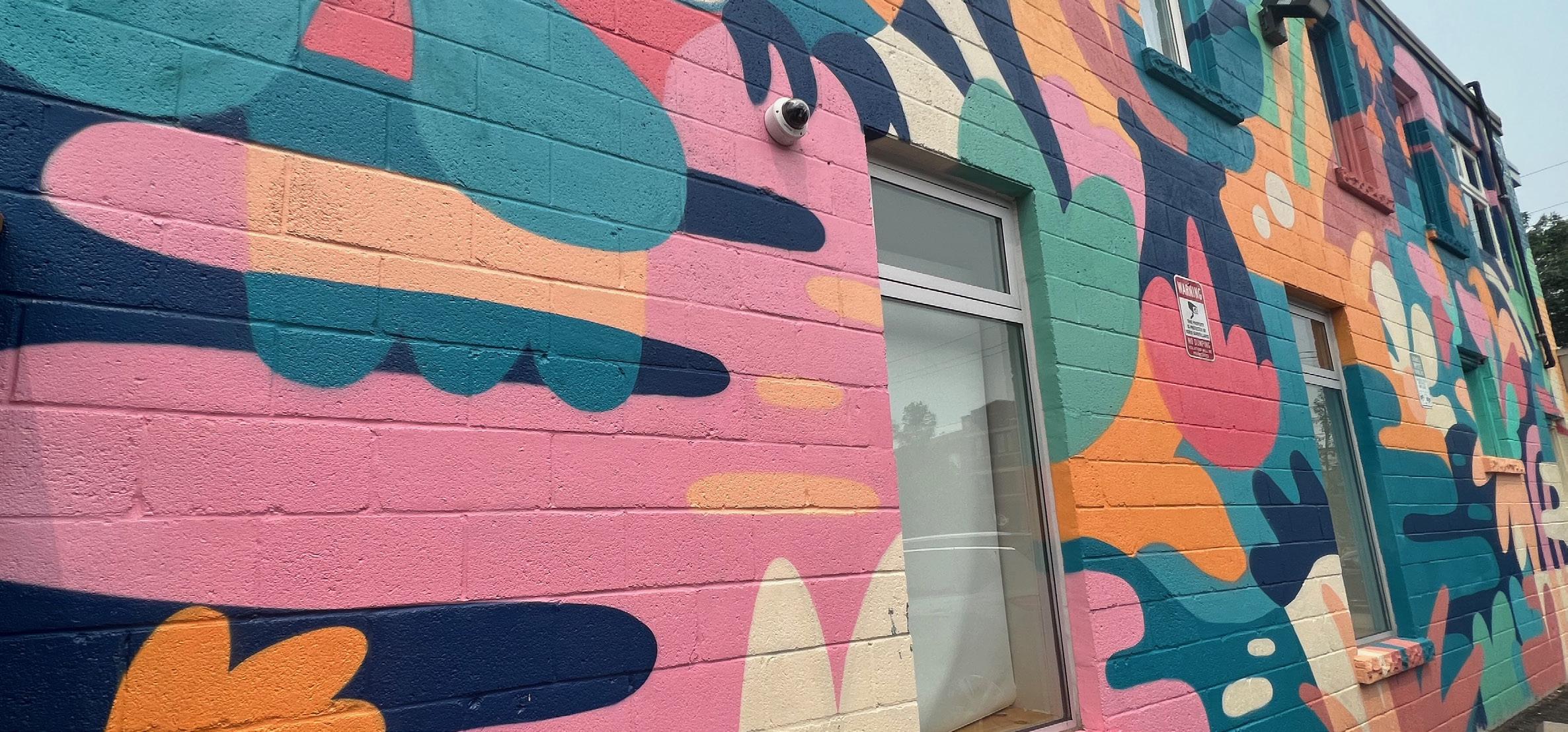 This mural adorns T he sT m aTT hew’s h ouse building aT 414 b arTon sT e . CreaT ed by h amilTon mural C rew Clear eyes Colle CT ive, T his explosion of C olour was one of 39 works of arT C reaT ed for T he 2022 Con C re T e C anvas fes T ival. This year’s even T is aug. 11-13 photo: h amilton city magazine