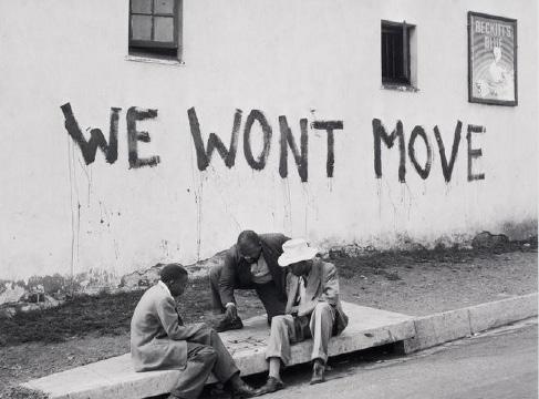 The photograph “We Won’t Move” was published in a February 1955 issue of Drum titled “What Will Happen to the Western Areas?”, referring to the West-