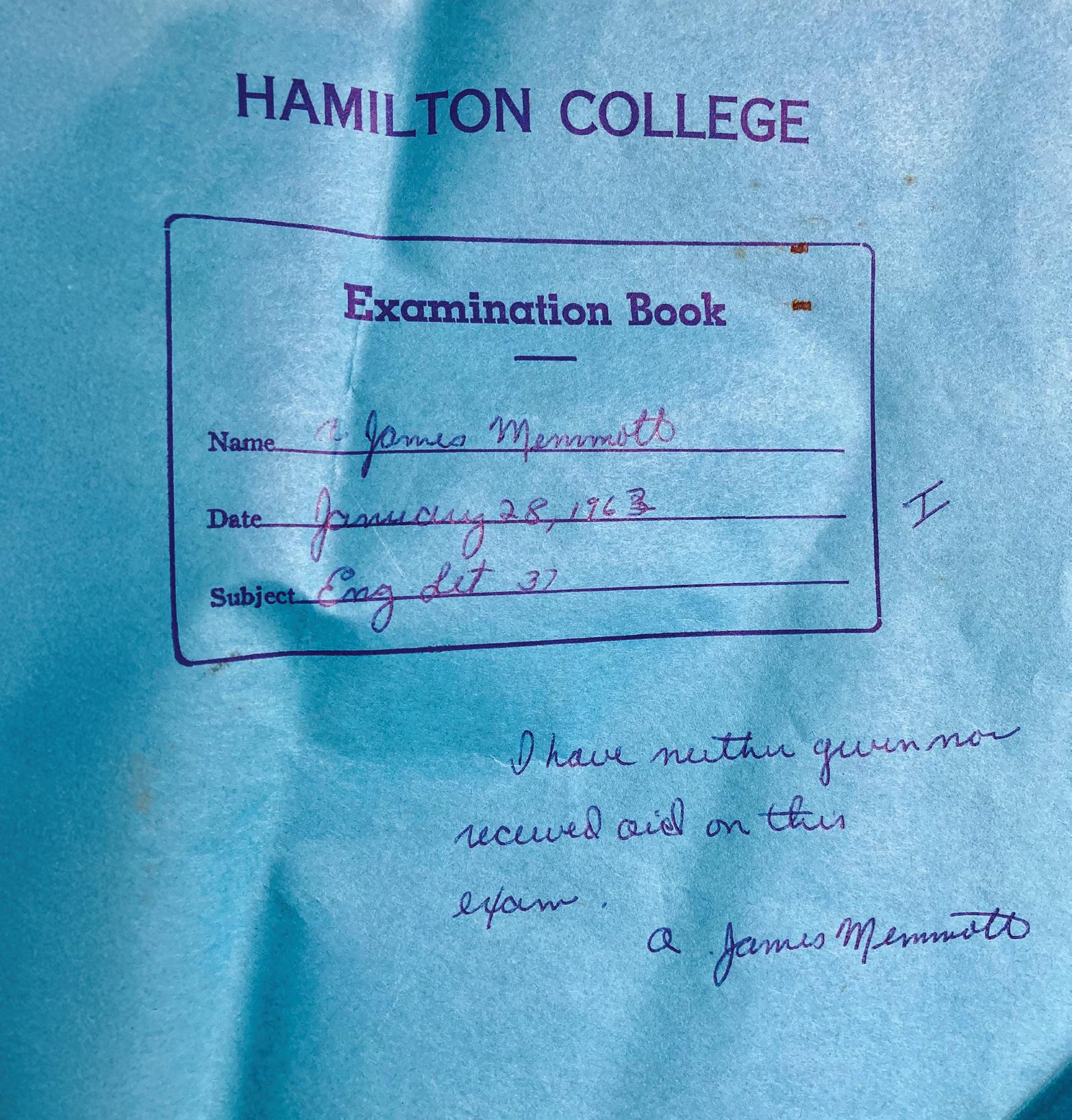 After Jim Memmott ’64 dug up a box that contained his old Hamilton blue books, he took on another assignment — to find out if the line-ruled exam notebooks are still in use today. PAGE 62