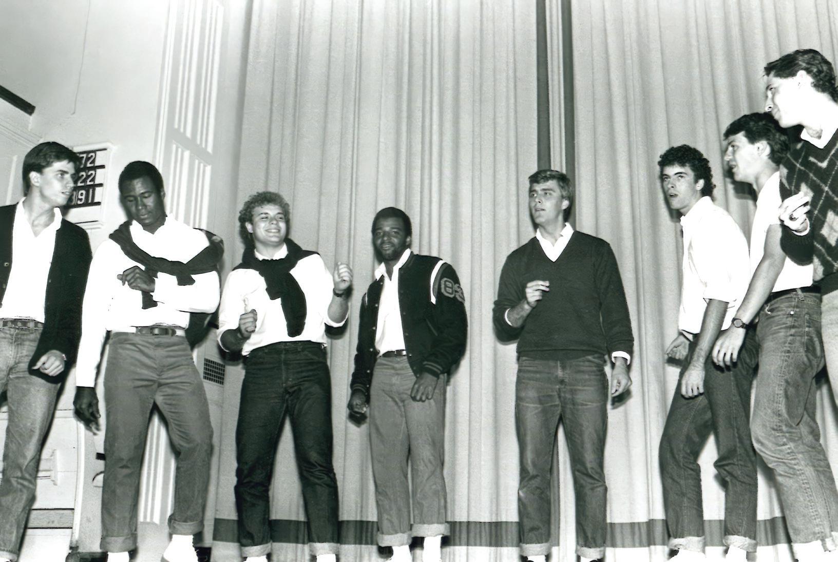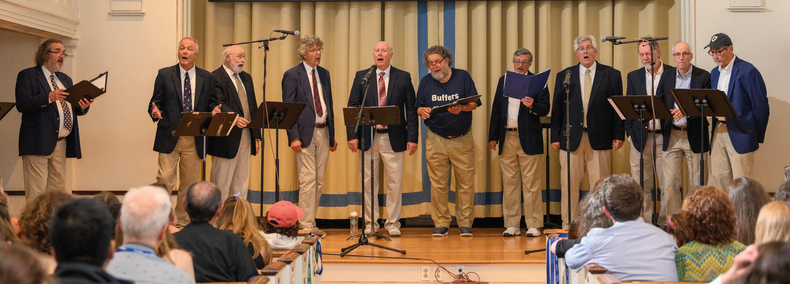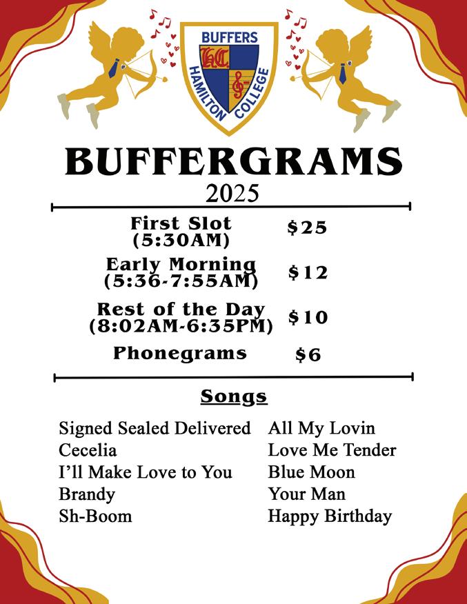 THIS PAGE: The traditional attire of a Buffer includes a navy blazer featuring the official emblem. Hamilton’s oldest a cappella group is marking its 75th anniversary. PAGE 46