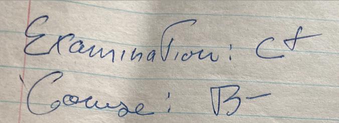 My blue books show that I once had a clear enough cursive. This surprises me, as my fifth-grade teacher, Mrs. Currie, held up my papers as a model of bad writing. Perhaps she shamed me into improving.