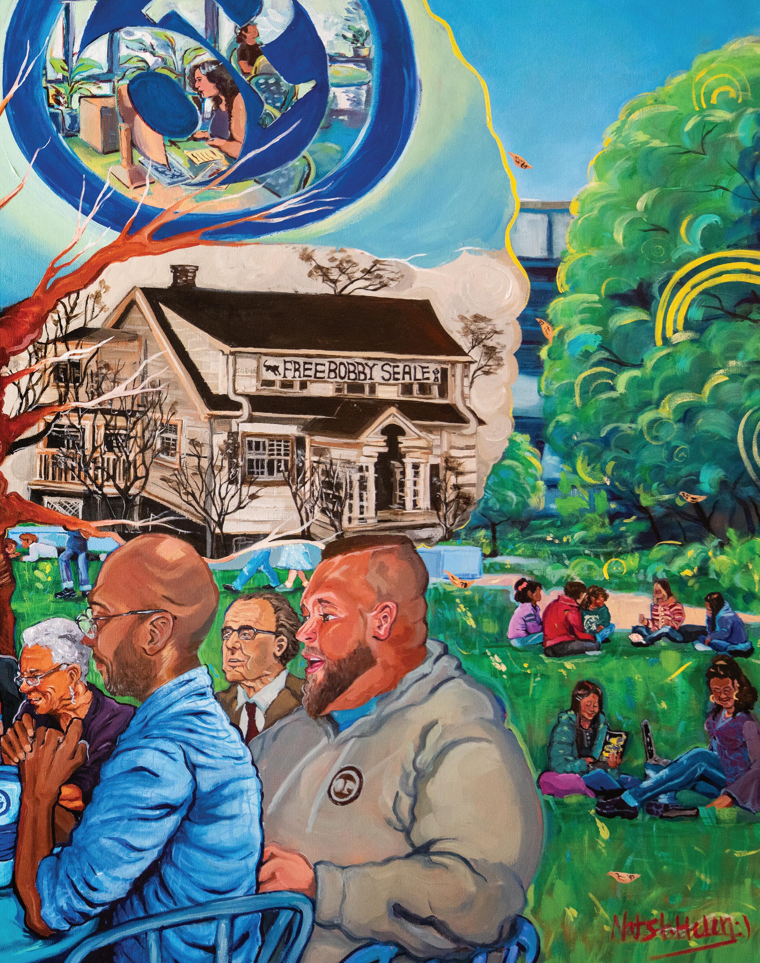 Of course, legendary former directors Christine Johnson and Phyllis Breland ’80 are included, along with the Afro-Latin Cultural Center, students demonstrating in Albany on New York Student Aid Alliance Advocacy Day, and a joyous graduation celebration. To learn more about the artist and the painting, which now hangs in the OP headquarters in McEwen Hall, visit hamilton.edu/OPpainting.