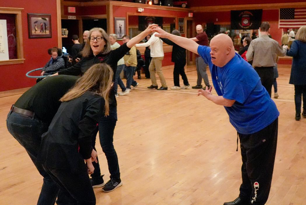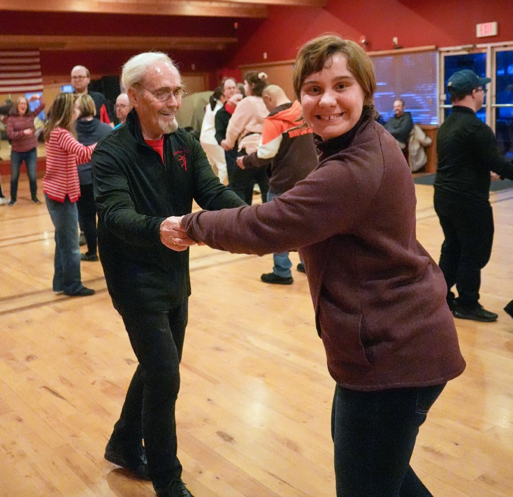 “Jay, do you want to dance?” asks Maddy Scott. “What’s next?” he replies with a smile. Scott is one of more than 30 people filling a Sharonville dance studio on a snowy February evening.