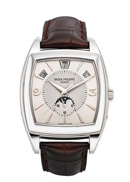 At left: The Patek Philippe Annual Calendar (ref. 5135G) in 18k white gold, made in 2006.