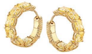 1. HAMILTON 18k yellow gold and fancy yellow cushion-cut “in-and-out” diamond hoop earrings.