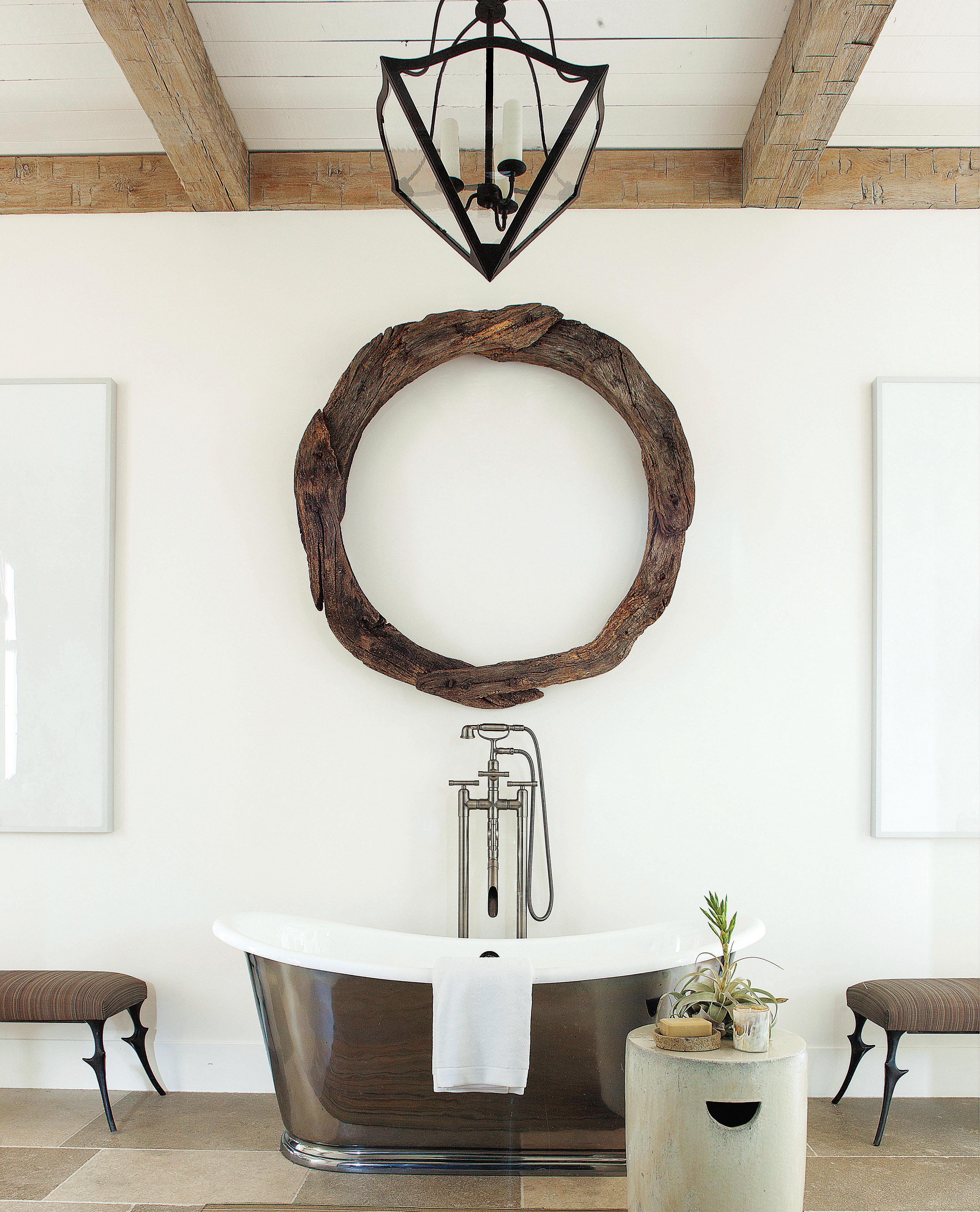 This Napa, California, home is a masterful counterpoint to the vineyards that make up much of the exterior landscape. Thoughtful touches such as hand-stitched pillows, antique textile throws and wood furniture accentuate the overall farmhouse vibe.