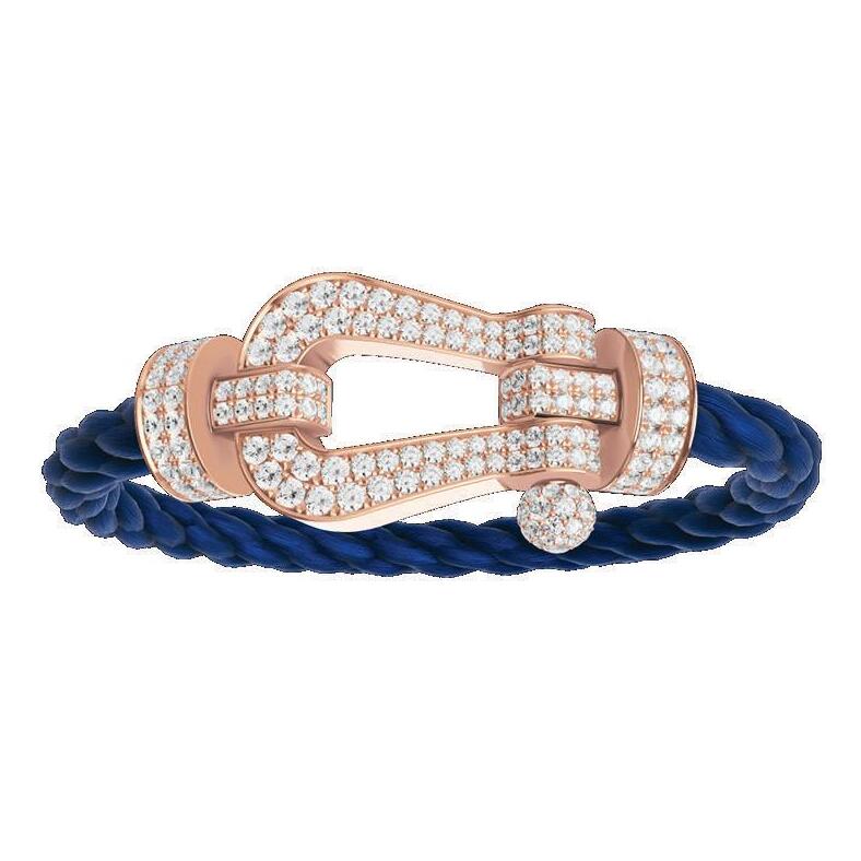 1. FRED A Force 10 18k rose gold, pavé diamond, and navy cable bracelet.