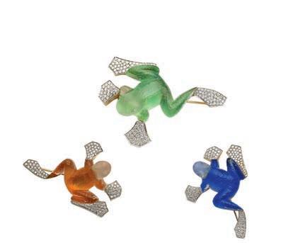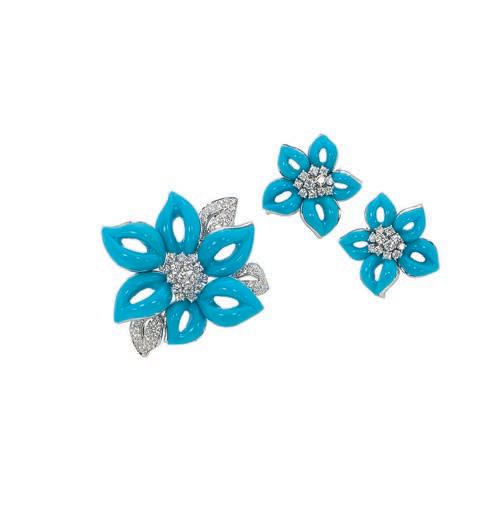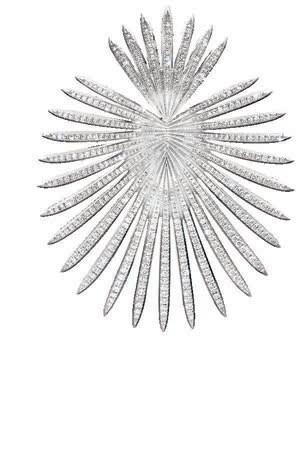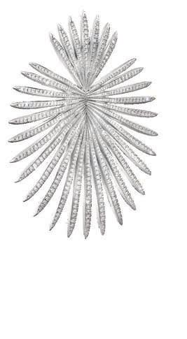A pair of 18k white gold and diamond “fan” earrings.