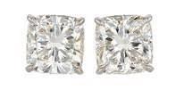 pair of Private Reserve platinum and cushion-cut diamond “stud” earrings.
