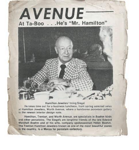 In 1976, after more than five decades in the fine jewelry and watch business, Irving Siegel retired to his beloved winter home in Palm Beach, FL. Retirement, however, wasn’t exactly Irving’s cup of tea, and it wasn’t long before the boredom that accompanied not meeting-andgreeting his clients every day compelled him to create a new extension of the Hamilton brand: a shop on the tony Palm Beach shopping destination, Worth Avenue.
