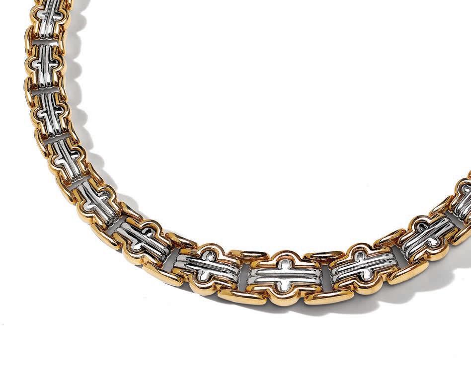 “Everything I’ve selected here has been chosen because it introduced something new to the vocabulary of the world of fine jewelry. For example, this vintage Bulgari Parentesi necklace in 18k gold and sterling silver invented a system of standardized but beautiful brackets that can be endlessly interchanged.”