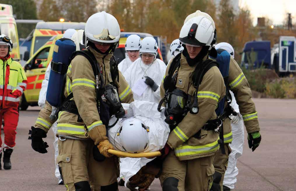 The Rescue Department of Kymenlaakso, Port of HaminaKotka Ltd and other co-operating authorities and operators in the area organised a major accident exercise in Hamina in October. Photograph: Merisade Kuusela / Rescue Department of Kymenlaakso.