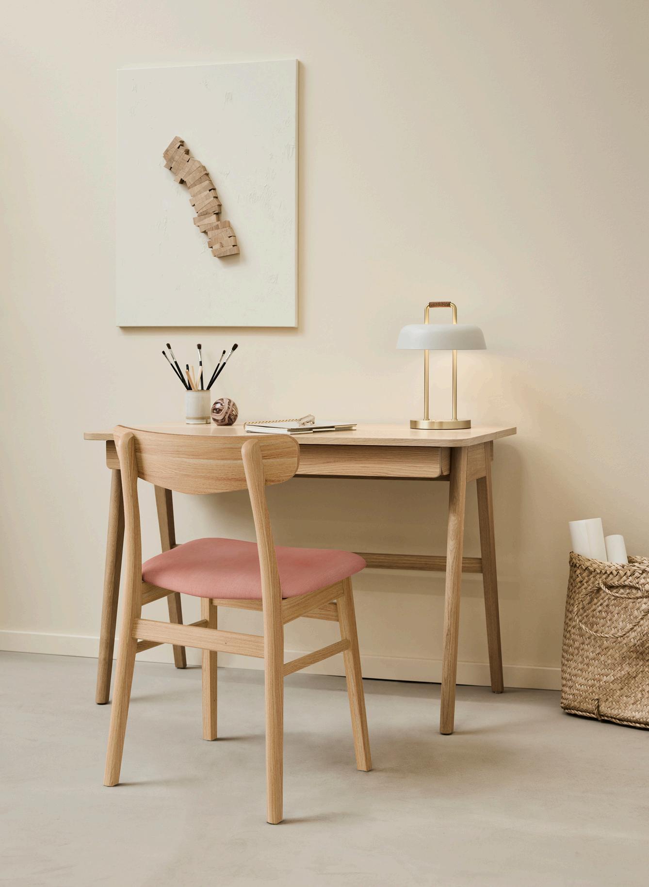 HOMEDESK by Hammel, hvidpigmenteret lakeret eg METTE by Hammel, lysegul, natur fletsæde
