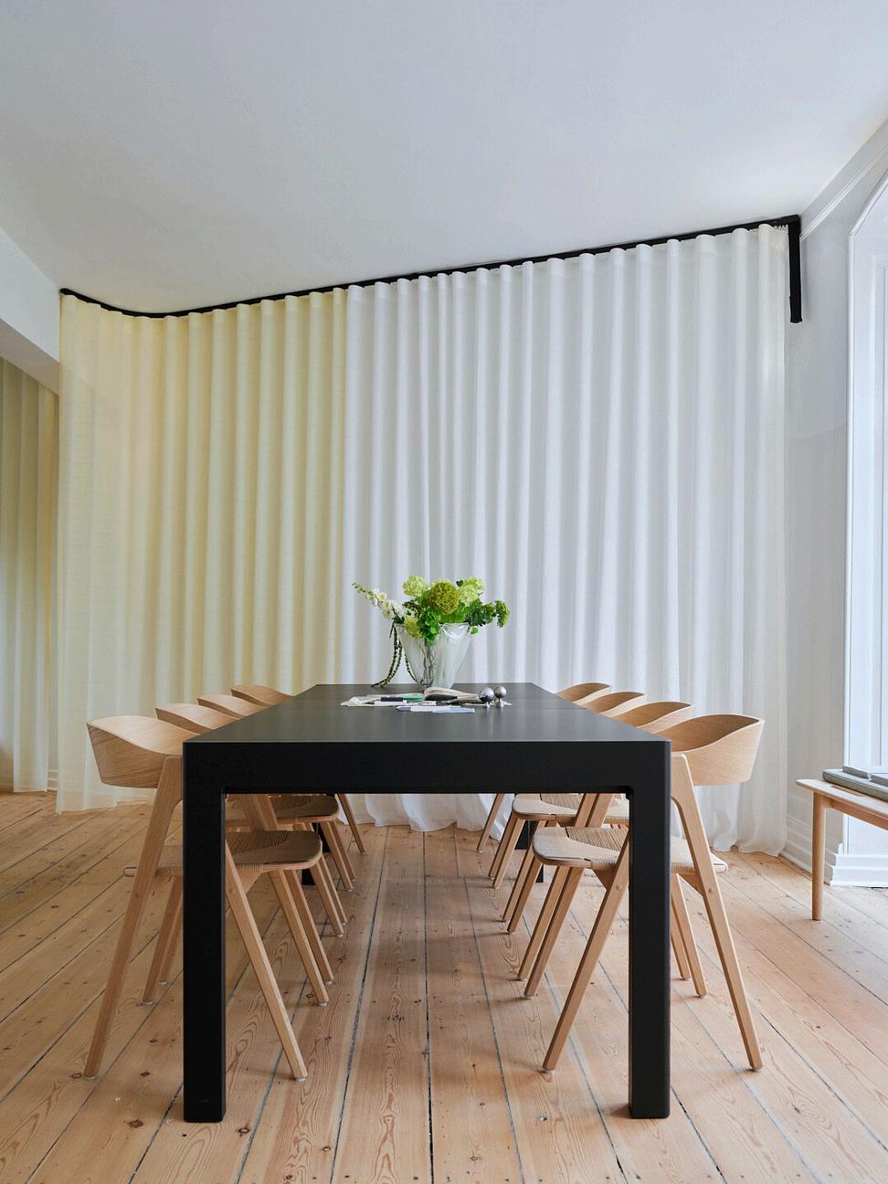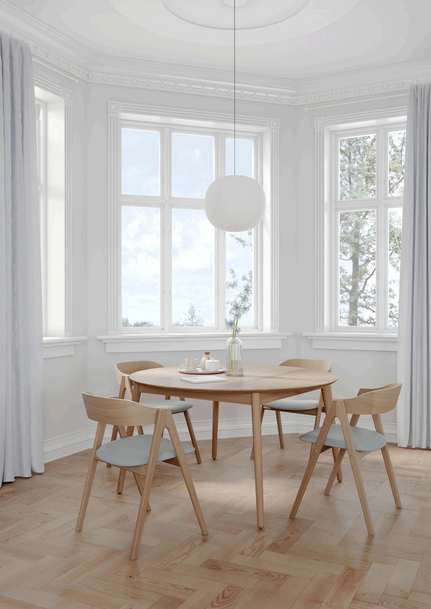 MEZA by Hammel rounded borplade bord med udtræk, hvidpigmenteret eg, METTE by Hammel stole hvidpigmenteret eg, fletsæde