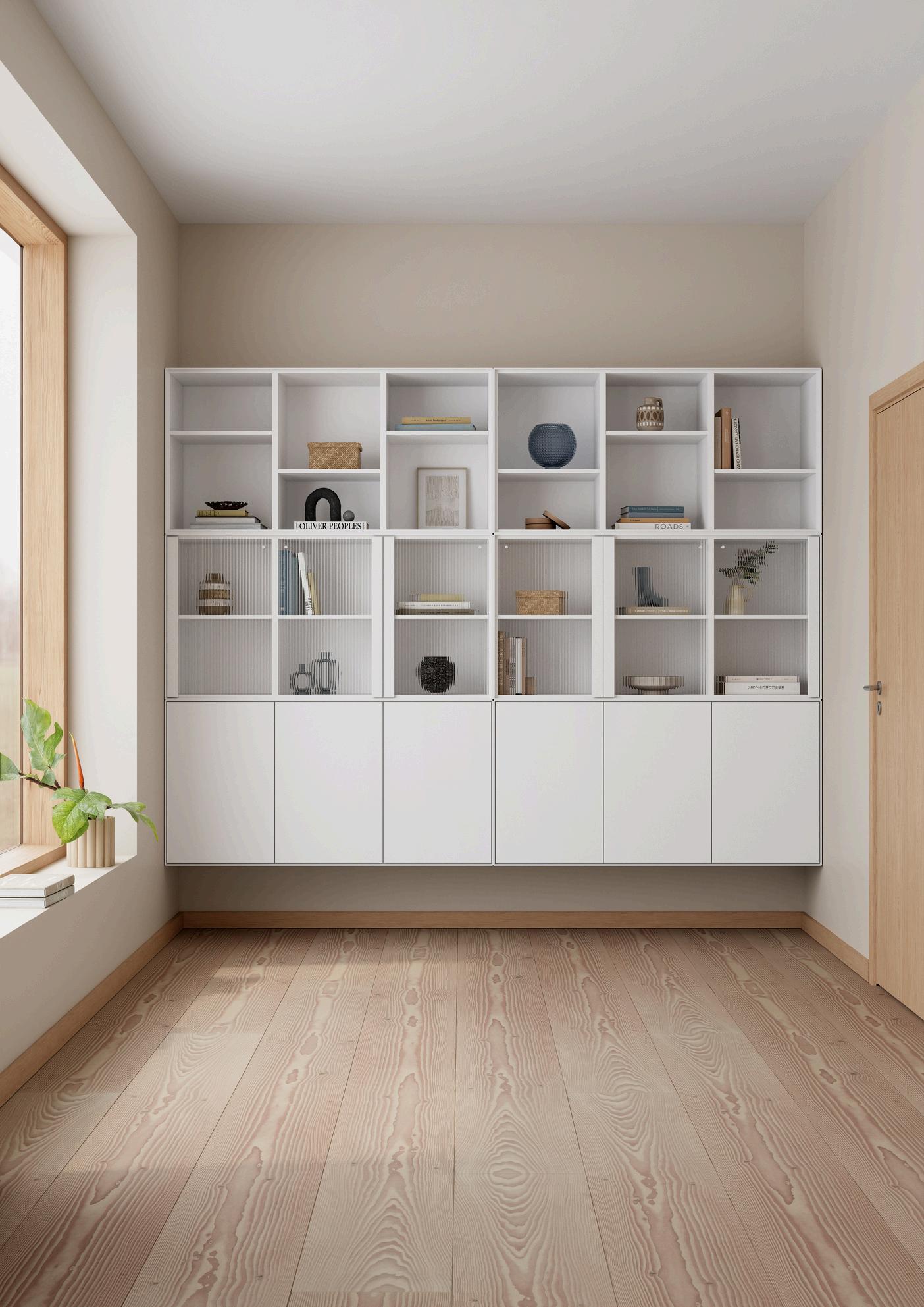 EDGE by Hammel modul 103 kombineret med 042, 012 døre og 047, 048 rillede glasdøre.