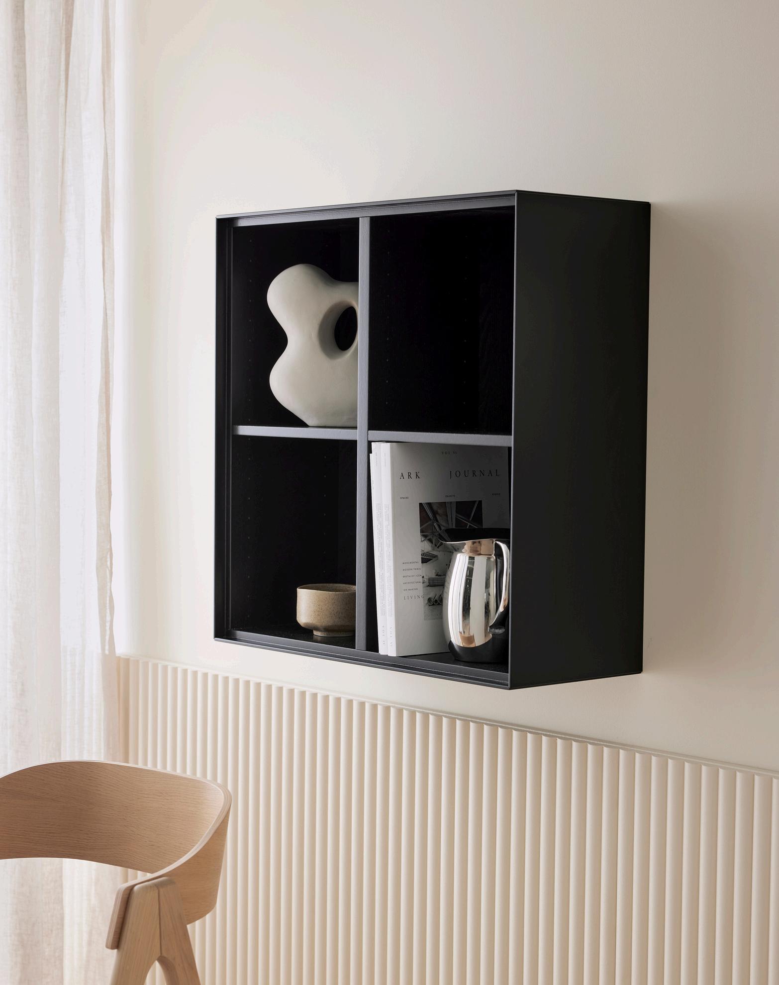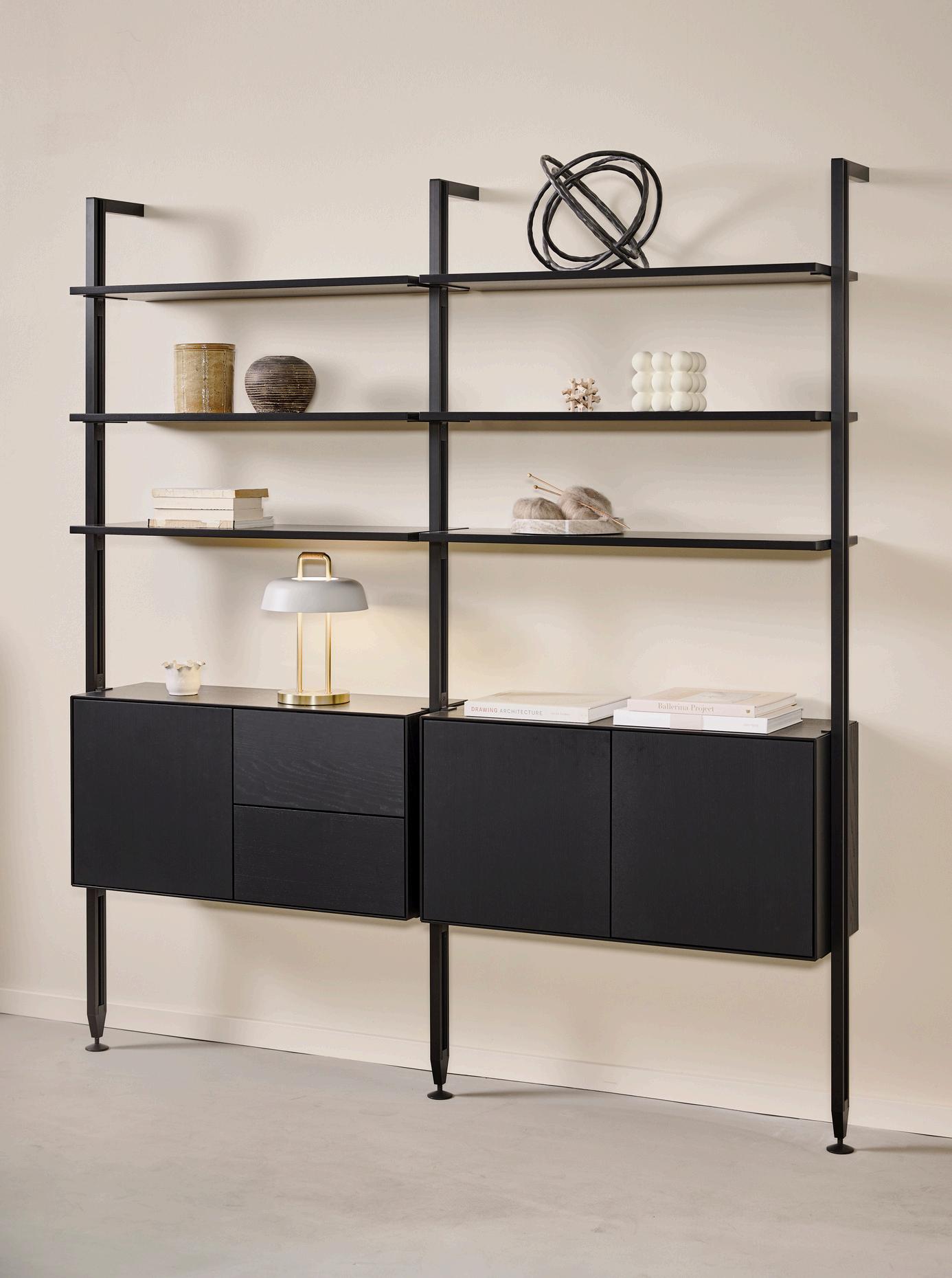 EDGE by Hammel vangereol, modul 400, 401, sort, kombineret med 101 moduler, 012 døre, 050 hylder og 011 skuffer, sortbejdset eg.