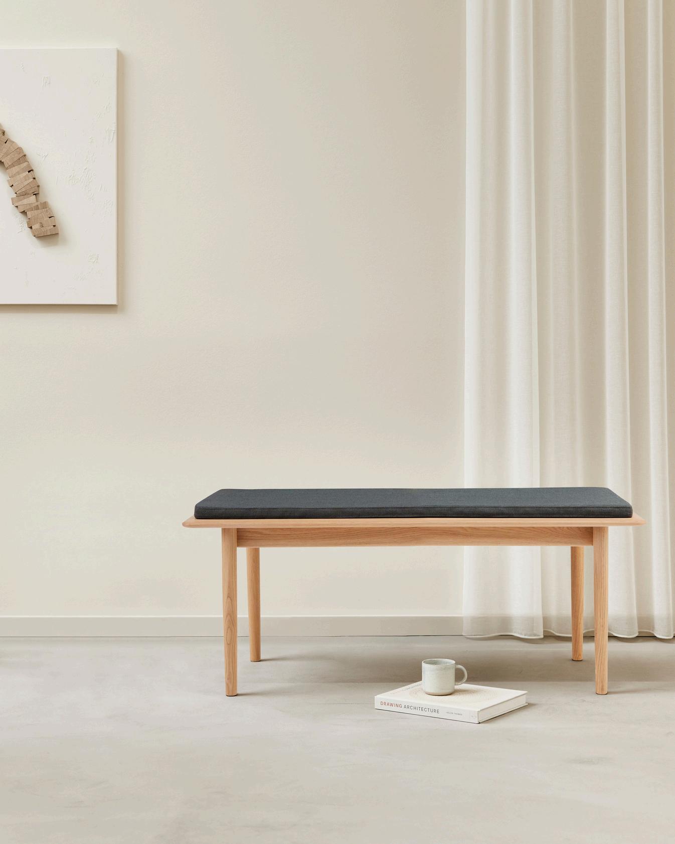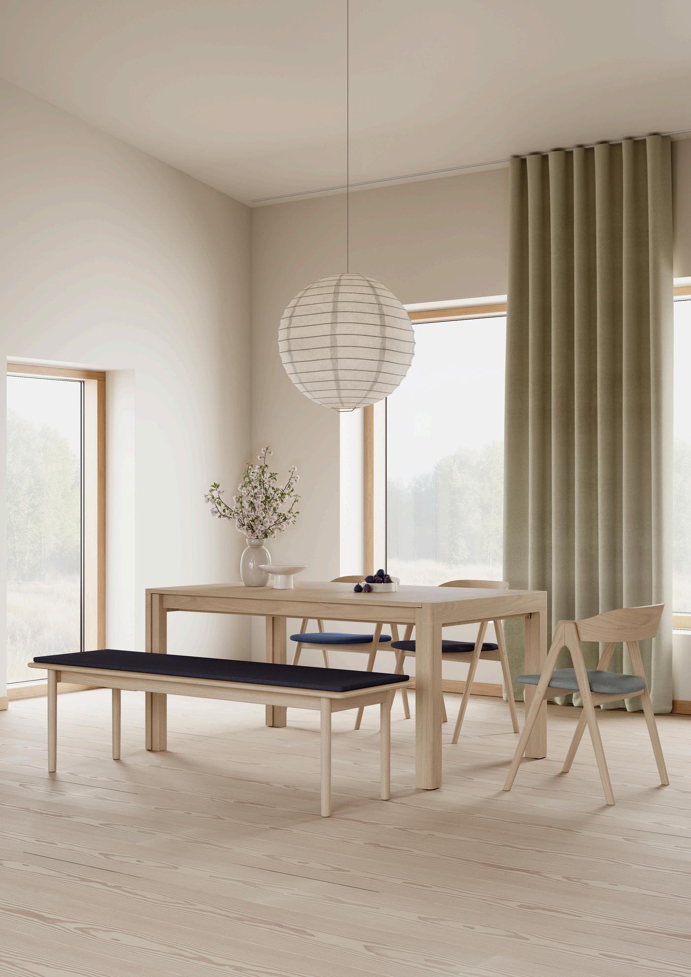 JOIN by Hammel bord 220 cm top i hvidpigmenteret lakeret eg, stel i massiv eg ELBA by Hammel bænk, hvidpigmenteret massiv eg, hynde i crisp 4125