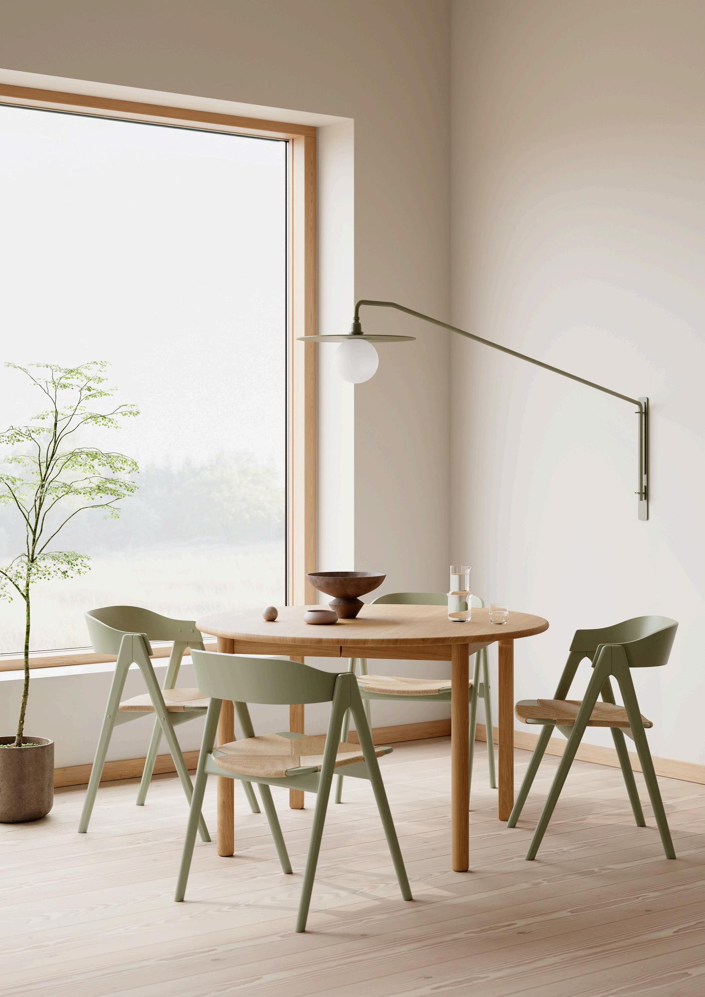 NOOR by Hammel bord, olieret eg METTE by Hammel stol, olivengrøn, fletsæde