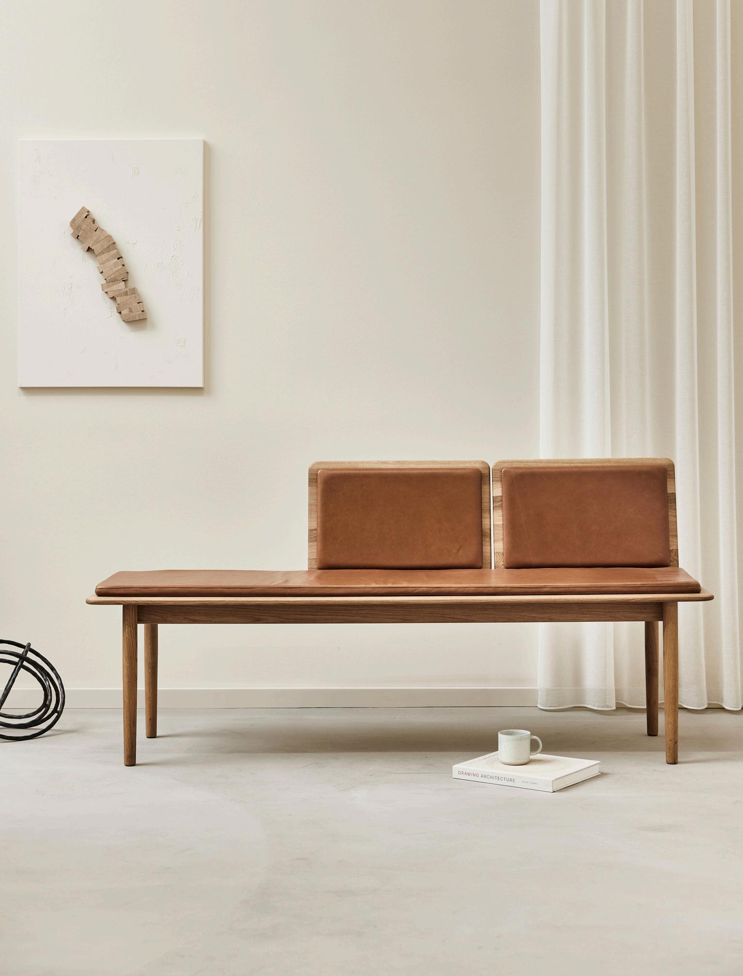 ELBA by Hammel 3 pers bænk med 3 ryghynder, sydney cognac læder, olieret eg