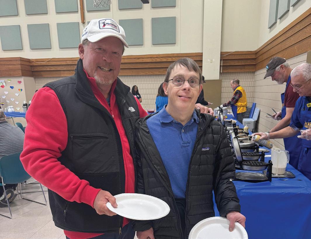 Lauren and Dawn, from our Gardner home, enjoyed the waffle breakfast. Behind them are (from left) Wayzata Lion’s Club members Don Marks, Pat Moran, Tim Anderson, and George Jaques, joined by Isaiah Allen, Hammer & NER’s Chief Development Officer.