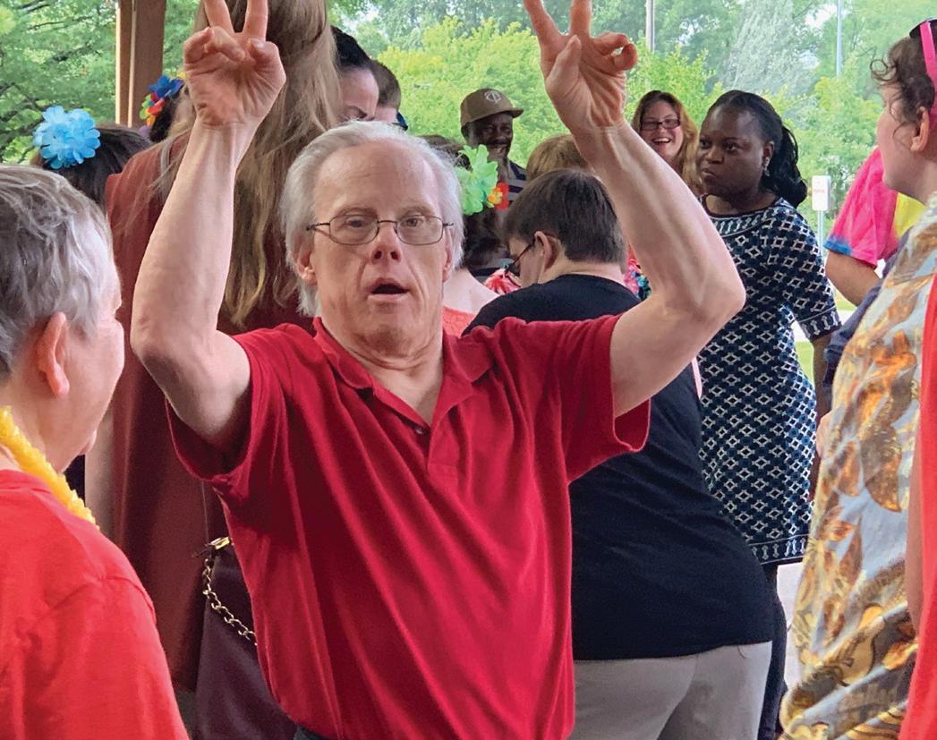 It takes a community of people to help shape a person’s direction in life. It is clear it started with Tim’s family. Their gentleness and kindness is embedded in him. They nurtured his needs and wants, which continued with staff at Respite making sure he had the things important to him such as his office space, preferred chores, and spending his leisure time listening to music, dancing, or creating art. Though Tim has slowed down quite a bit, the staff at Edgewater continue to make sure he has the things that are important to him like his office and attending the Luau and other events where he can socialize and dance at his pace.