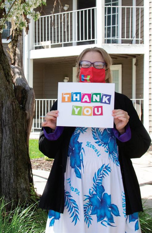 Staff and individuals at Hammer's homes and apartments with a sign in their honor.