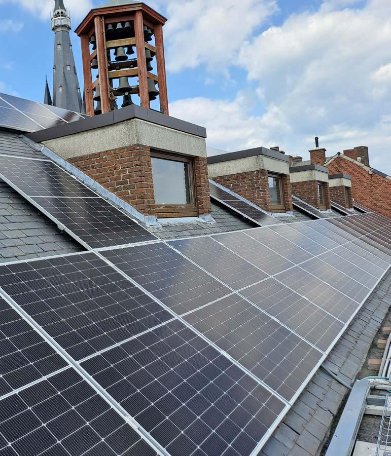 Het stadhuis kreeg op haar beurt een grondige dakrenovatie met isolatie, een nieuwe toplaag en zonnepanelen. Ook het dak van het aangrenzende Forum – dit gebouw is eigendom van de stad – werd aangepakt. De asbestleien werden verwijderd en zowel het hellend als plat dak werd geïsoleerd en afgewerkt met nieuwe roofing en kunstleien.