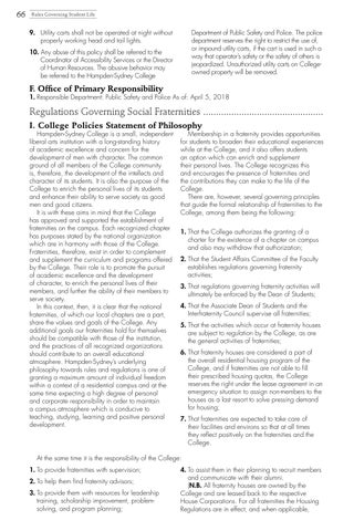 • Understand his place on campus; he should show deference to his older peers and unflagging respect to all figures of authority.