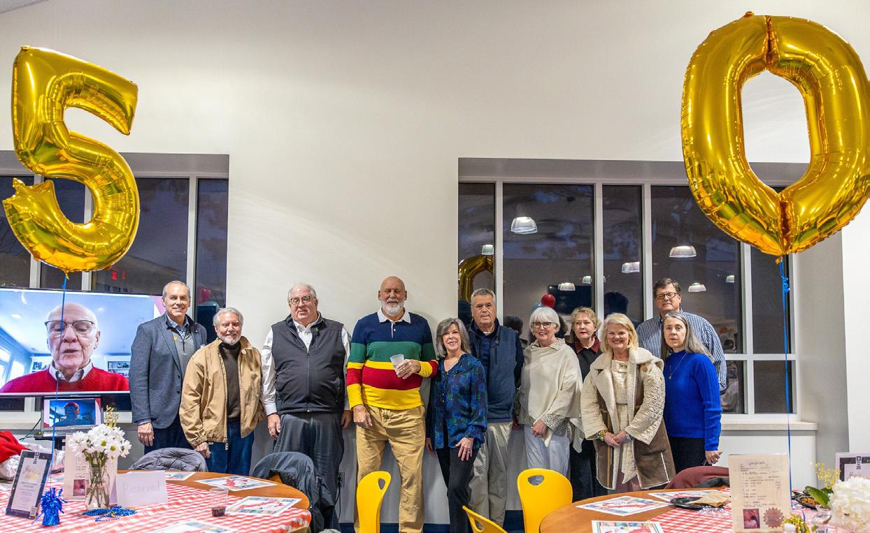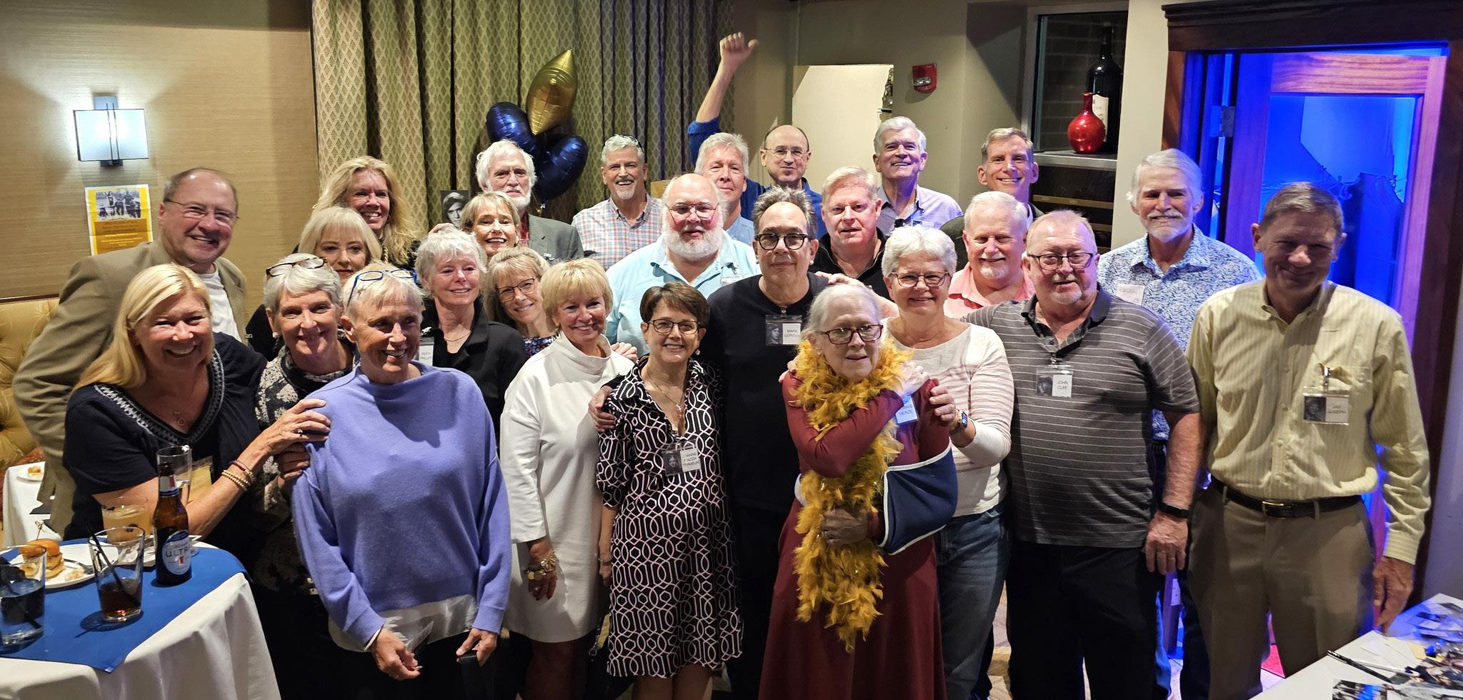 The Class of 1974 celebrated its landmark fiftieth reunion on Saturday, October 19, 2024, with an upscale cocktail party at Fin Seafood in Port Warwick, Newport News. Reconnecting over seafood hors d’oeuvres, tasty desserts, and a champagne toast to all in attendance, more than fifty classmates, friends, and HRA faculty and staff came together for the occasion. John Stout ’82 and Director of Alumni Relations Tommy Yevak ’83 supplied name tags, old photographs, and a slideshow highlighting the times the Class of 1974 shared while at HRA. Reflecting on an evening of “many happy memories and much laughter,” class ambassador Leigh Morris Henze ’74 excitedly declared that she and her classmates all look forward to their fifty-fifth reunion in 2029.