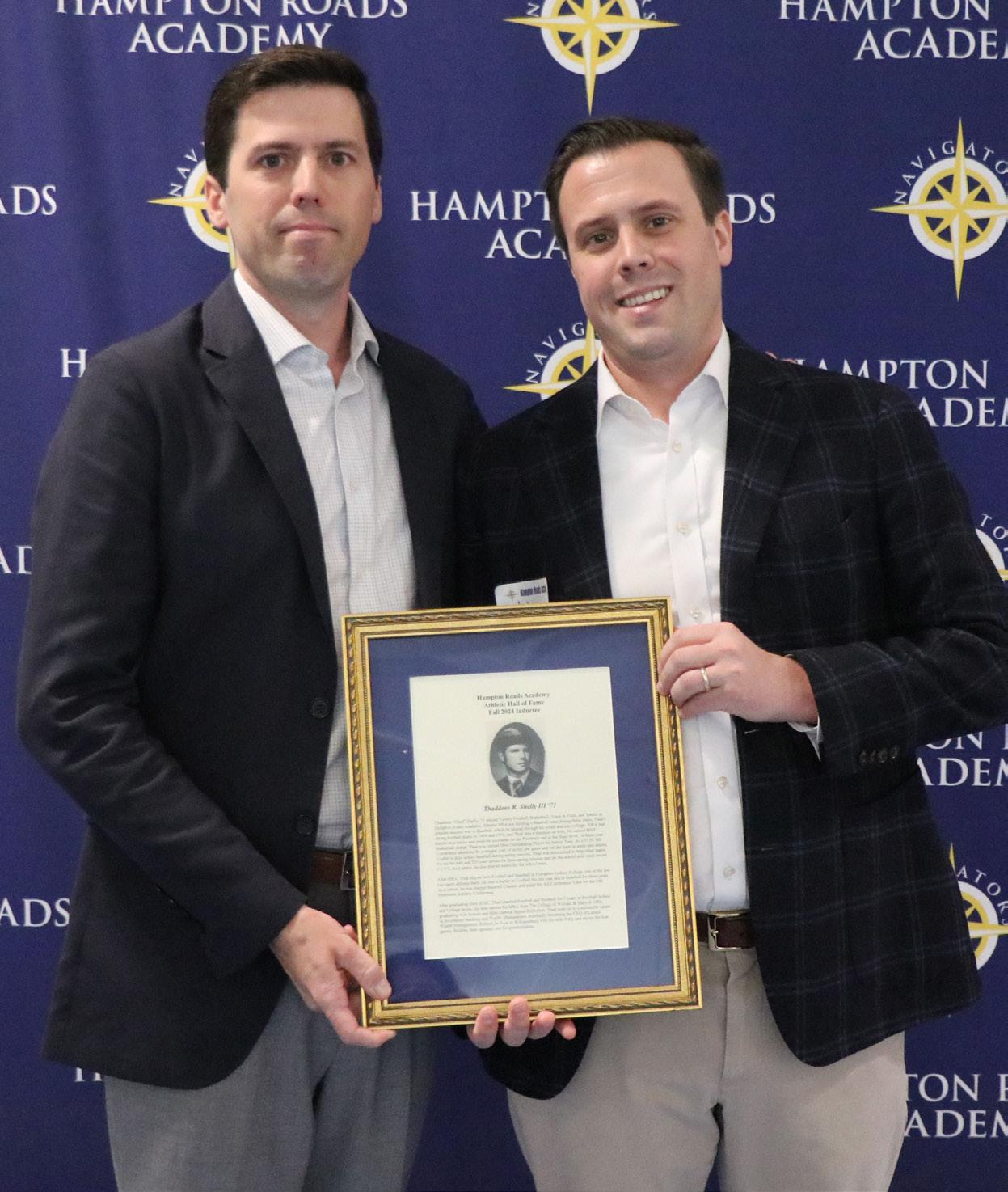Thankfully, days before losing Thad Shelly, members of the HRA family had an opportunity to express their gratitude, admiration, and love. Lasley, Director of Alumni Relations Tommy Yevak ’83, and Shelly’s friend and classmate David Otey, Jr. ’71, whom the honoree had chosen to speak on his behalf at the Induction Breakfast, visited Shelly at his home in Williamsburg. There, they presented him with his plaque and the text of the speeches to be delivered in his honor.