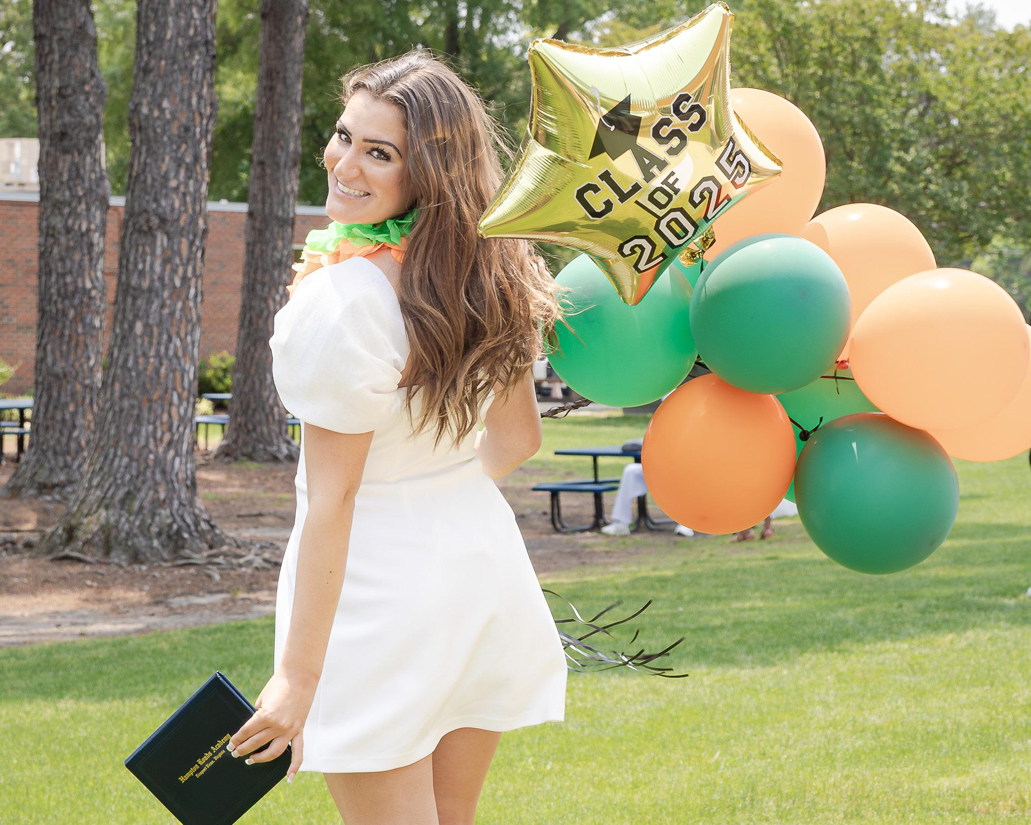 The ceremony opened with remarks from Head of School Jay Lasley and a salutation from Upper School science teacher Dr. Maribel Gendreau, selected by the Class of 2025 for this honor. Senior class president Paul Bennett Northam was chosen by his peers to deliver a rousing speech on behalf of the graduates before alumna Dr. Leslie Stiff Jones ’87 gave the Commencement Address. After the conferral of diplomas, Lasley closed the exercises and invited the class to sing the Alma Mater.