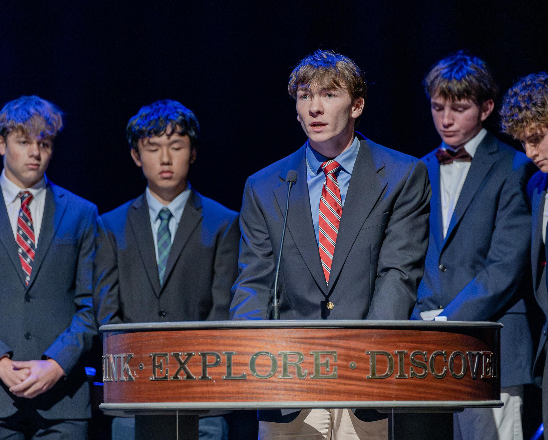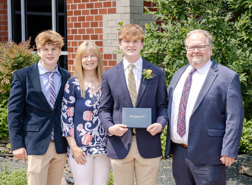 The Senior Valedictory Award is bestowed in honor of Dr. and Mrs. Robert E. Cox to the member of the graduating class who has maintained the highest academic average during his/her career at the Academy. The recipient is Ishan Andrew Hartke
