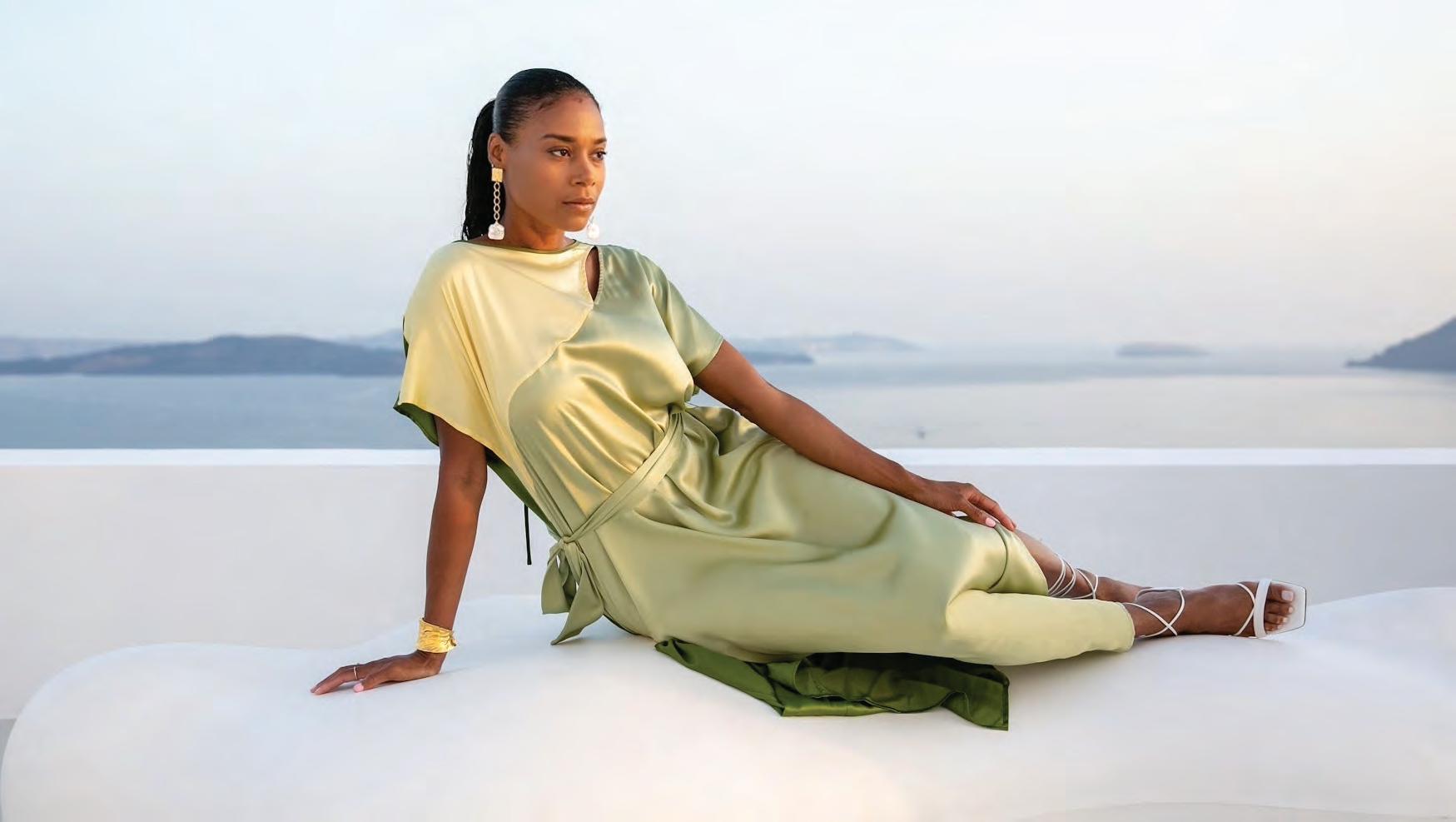 A. It depends where I am. I love rompers in the summer, they are so easy and cozy especially with a bathing suit. I love maxis and biker shorts with an oversized shirt. For me it’s all about coziness, unless I am going out. When I’m out and about, I don’t mind being uncomfortable in a tight dress.